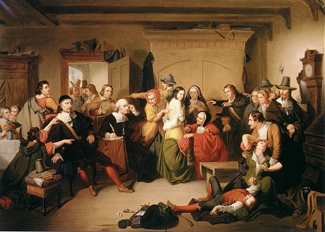 "The Examination of a Witch" by T. H. Matteson Court officials look for so-called witch marks (courtesy Peabody Essex Museum)